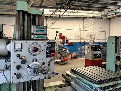 Máquinas para realizar colada centrífuga, una para cojinetes de hasta 500 mm de diámetro y 350 mm de largo, y otra para cojinetes de hasta 1000 mm de diámetro y 1300 mm de largo.